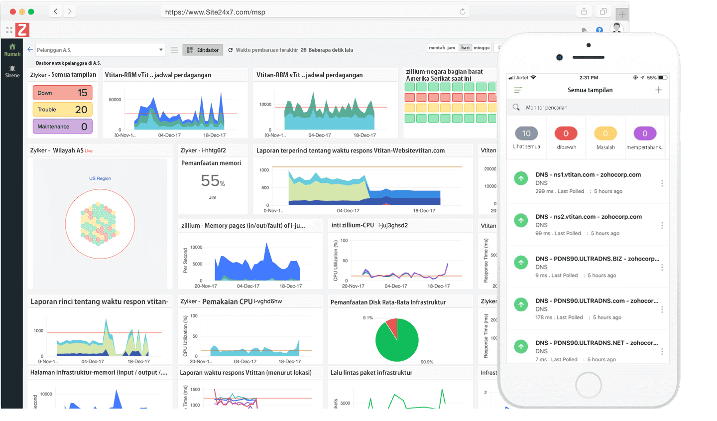 Pantau infrastruktur front-end dan back-end Anda dari jarak jauh menggunakan solusi pemantauan lengkap kami.