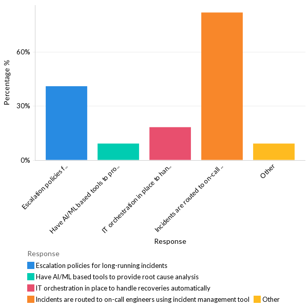 82% of respondents say that incidents are routed to on-call engineers using an incident management tool.