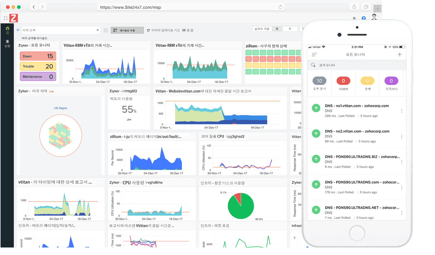 Site24x7의 유연한 모니터링 솔루션으로 모든 원격 모니터링 요구 사항(RMM)을 충족해 보십시오.