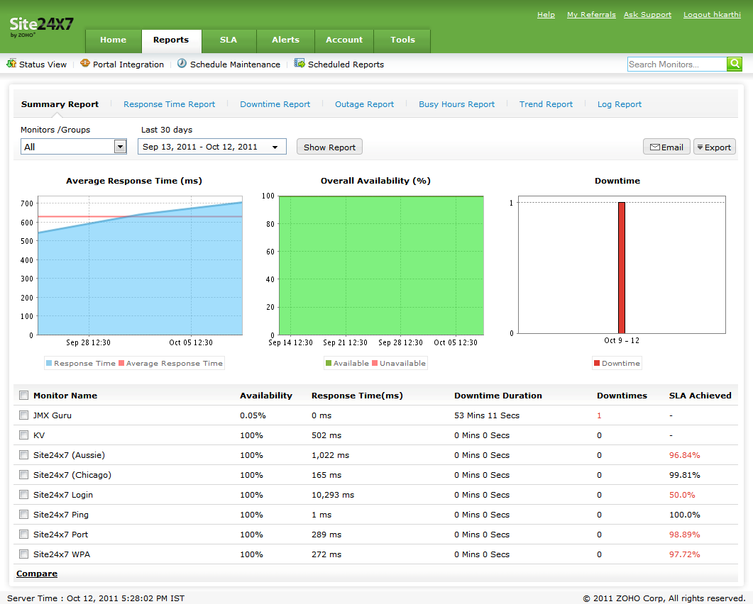 Site24x7 Website Performance Reporting