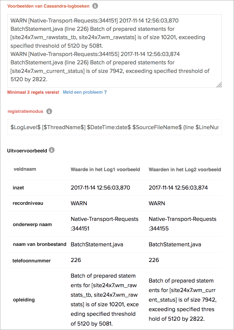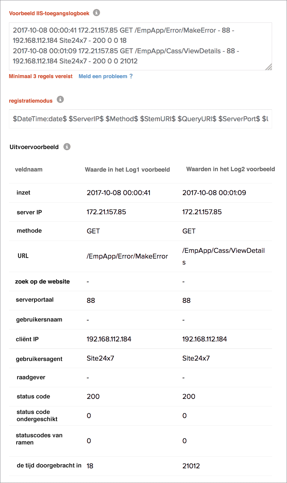 Al uw typische applicatielogs (bijv. IIS, Cassandra, Apache, NGINX, etc.) en logging-frameworks (bijv. Log4j, Log4Net en NLog) worden automatisch herkend. U kunt ook uw eigen logpatroon definiëren dat als een aangepast formaat kan worden opgeslagen. Logboeken die onder een standaard- of aangepast formaat vallen, worden automatisch opgehaald tijdens automatische detectie. U kunt ook logbestanden van uw externe servers ophalen en beheren.