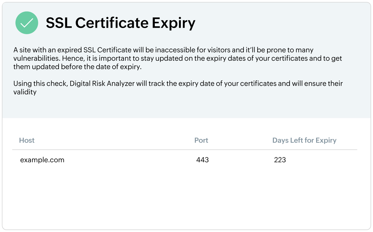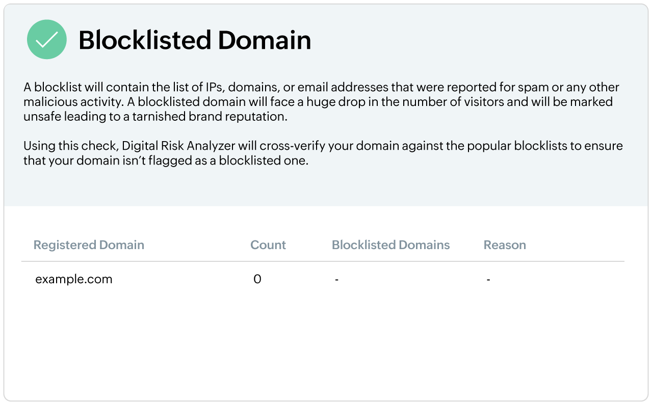 By running regular scans on your domain, the DRA identifies potential threats related to various aspects of your domain and can keep you updated on security posture. This can help in identifying risks and vulnerabilities way before they affect your customers.