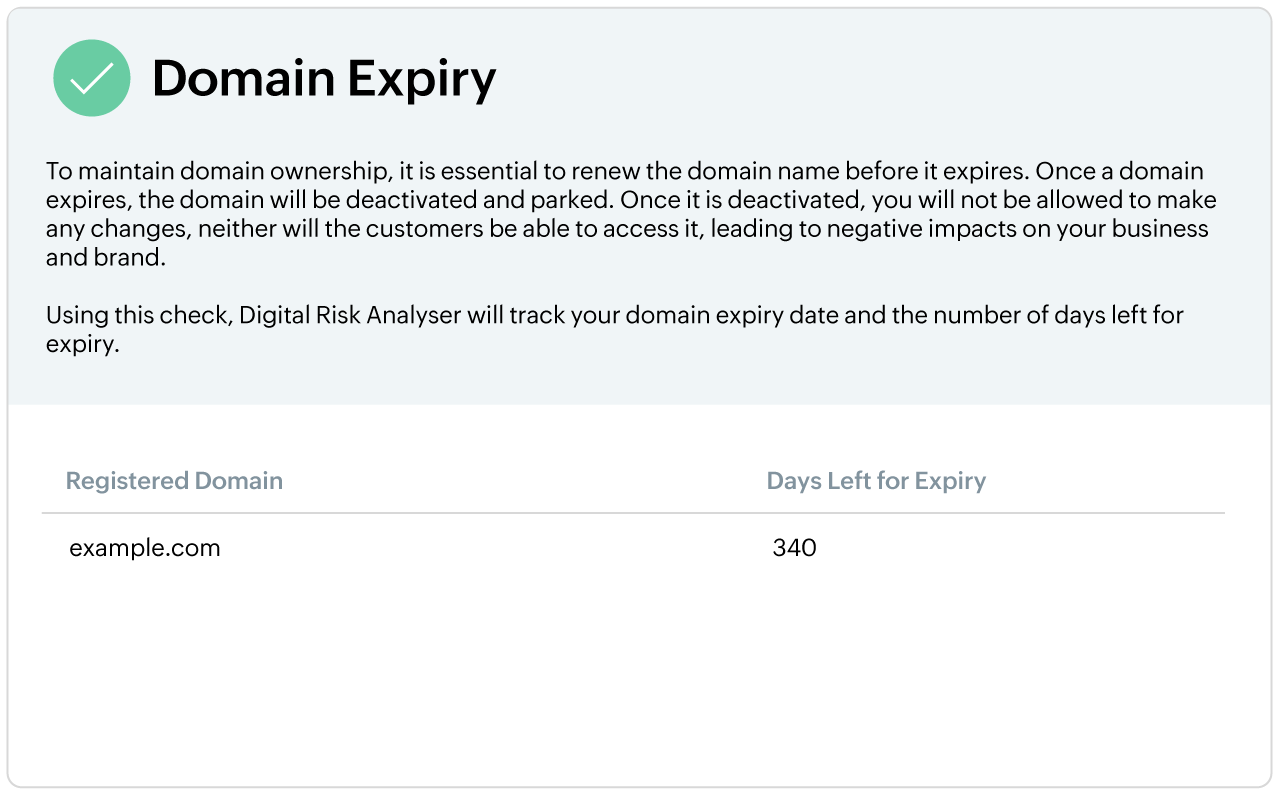 The domain you own is your address in the digital space, and any attack on it can mean financial implications, data loss, loss of customer trust, and a tarnished brand reputation. By prioritizing domain security with our comprehensive domain risk assessment solutions, you can bolster your defences and ensure a secure digital environment for your visitors.