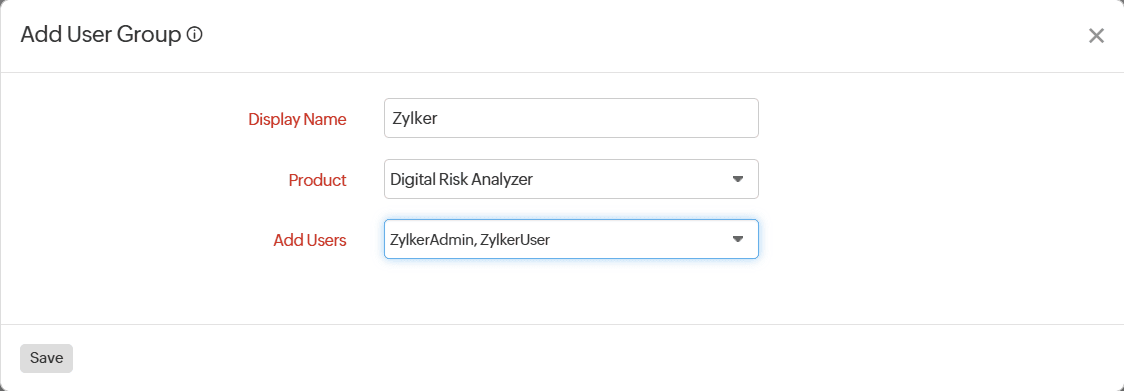 | Digital Risk Analyzer User | Digital Risk Analyzer user will have read-only access to the modules of the product. |