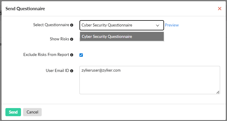 - In the left navigation menu, navigate to Security Questionnaire > Send Questionnaire.