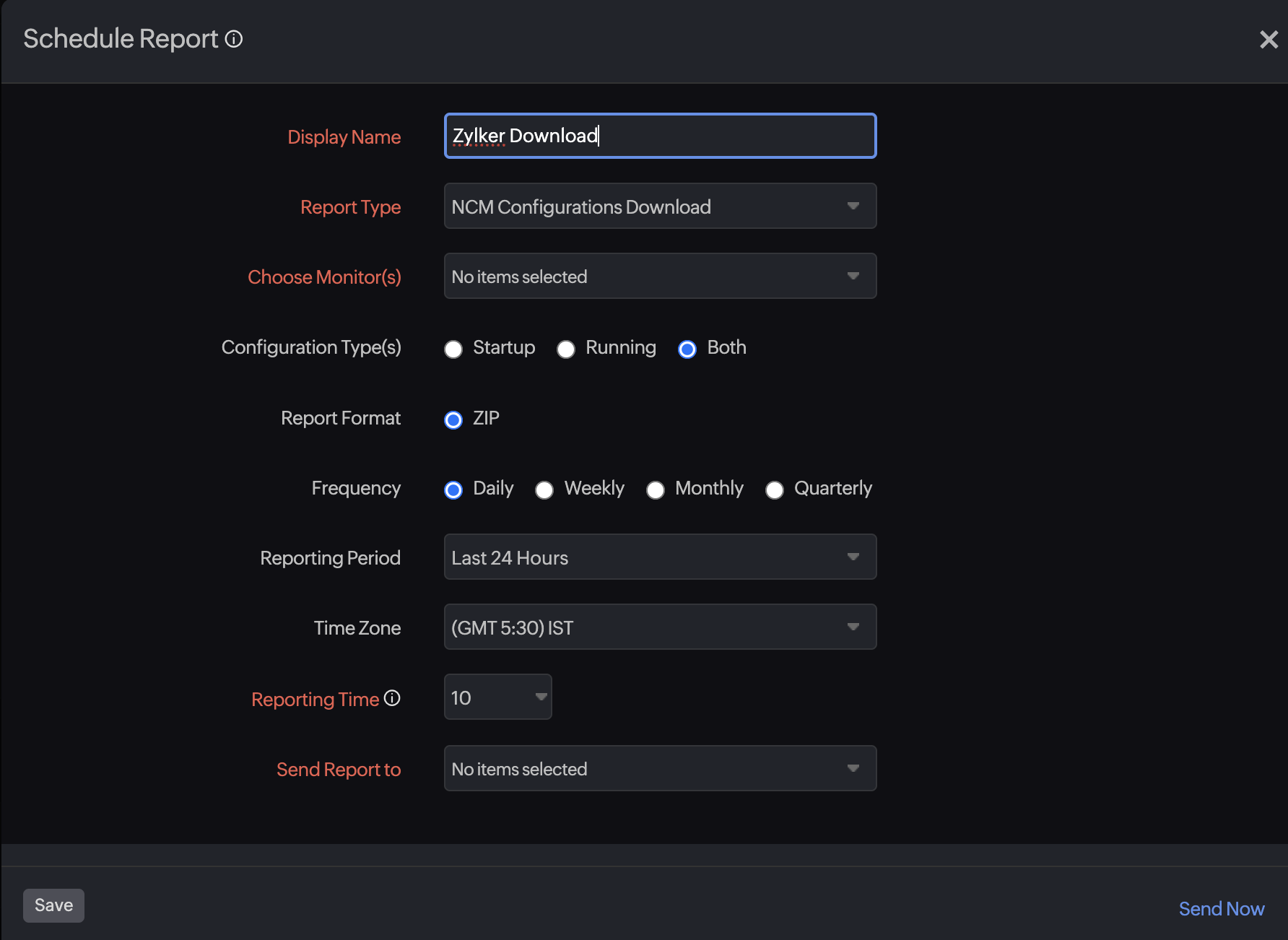You can schedule NCM configuration reports to be generated and shared automatically: